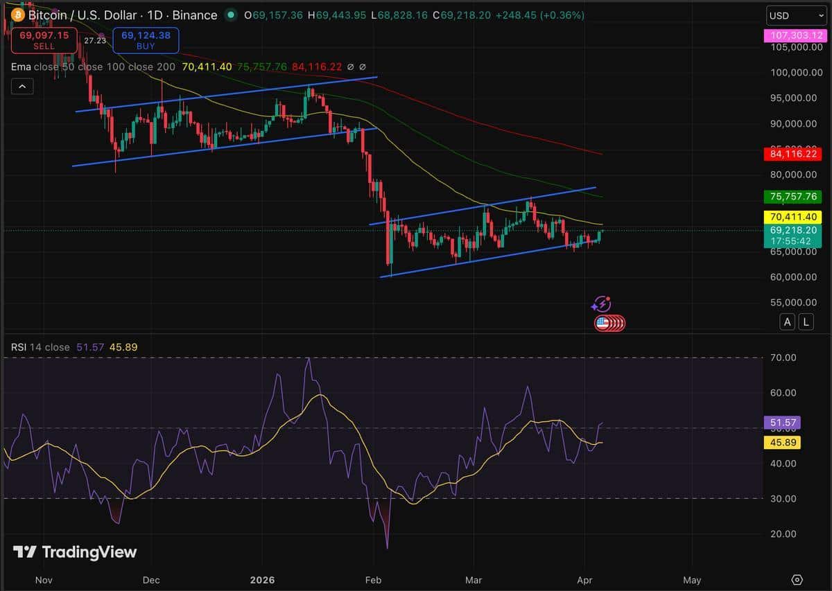 Moving part Bitcoin It is currently within a descending channel formed after its October 2025 high above the $126,000 level. Although the recent rebound from the $60,000 demand zone pushed the price towards resistance at $72,000, the 50-day moving average at around $85,300 is still far from the ceiling, serving as a reminder of just how much gains have been lost.