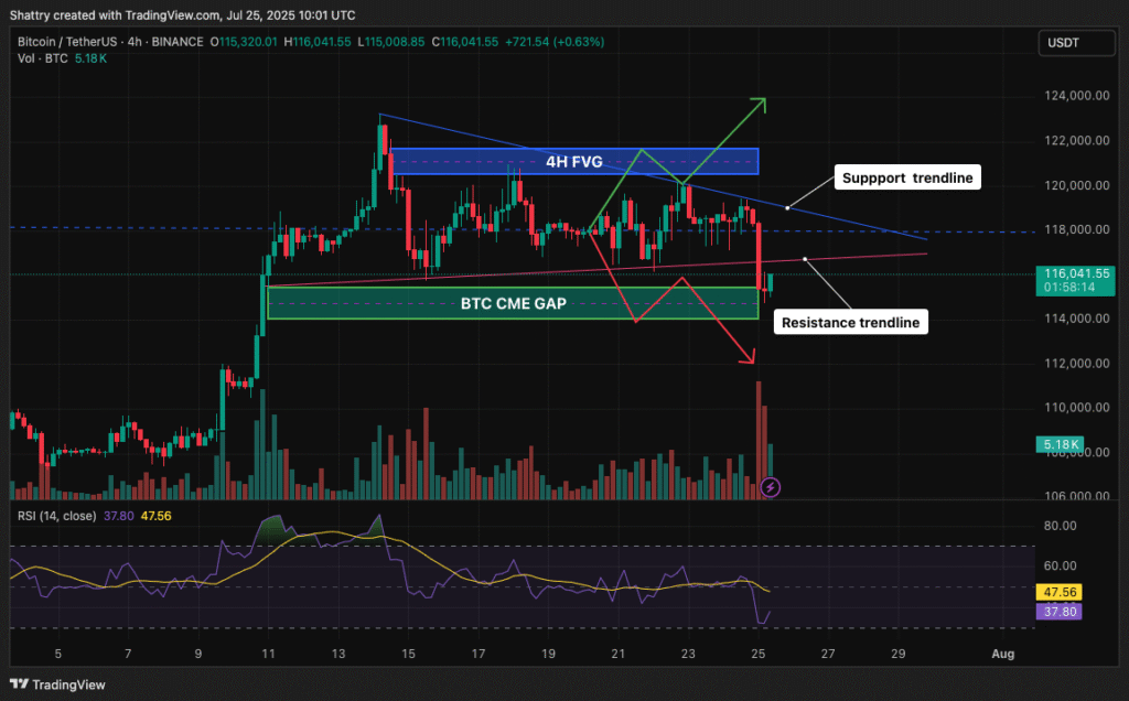 This sales pressure combined with large scale liquidations led to the price of Bitcoin at less than $ 116,000 in the light of market attempts to regain its balance.