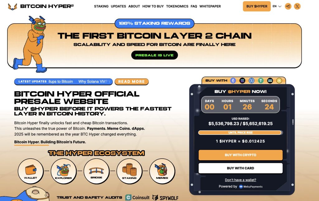 Finally, interested persons can join a currency subscription early Hyper bitcoin And buy it back $ 0.012,425 During a limited period, the monetary project has managed to collect more than $ 5.5 million so far. The possibility of purchase is available directly via a website Hyper bitcoin The manager using a bouquet of digital currencies or using a visa and maskertard, as it is possible to buy via the application Best wallet Sure and devoted to the preservation and management of digital assets.