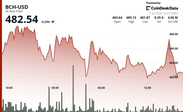 - From 1:06 p.m. to 2:05 p.m. UTC on July 5, BCH won $ 1.20 (0.25%), briefly exceeding $ 483.25 on Rishing volume.