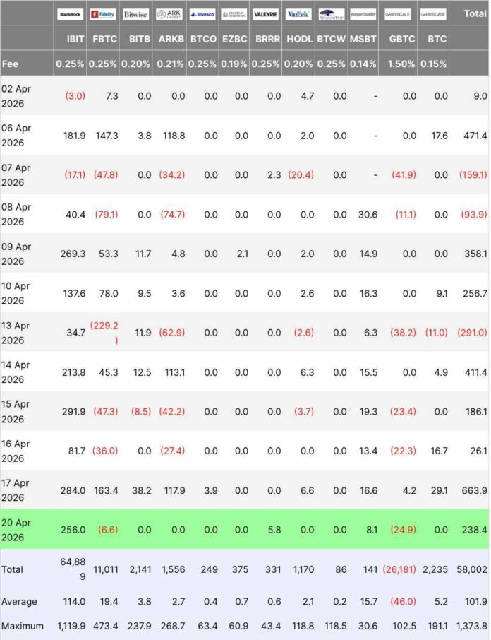 Collectively, US Bitcoin spot funds saw $1.9 billion in net inflows over the same five days, the strongest weekly performance since early February. April 17 was the biggest day, with total fund flows reaching $663.89 million, of which the IBIT fund alone acquired $283.96 million, while Fidelity’s FBTC fund added another $163 million.