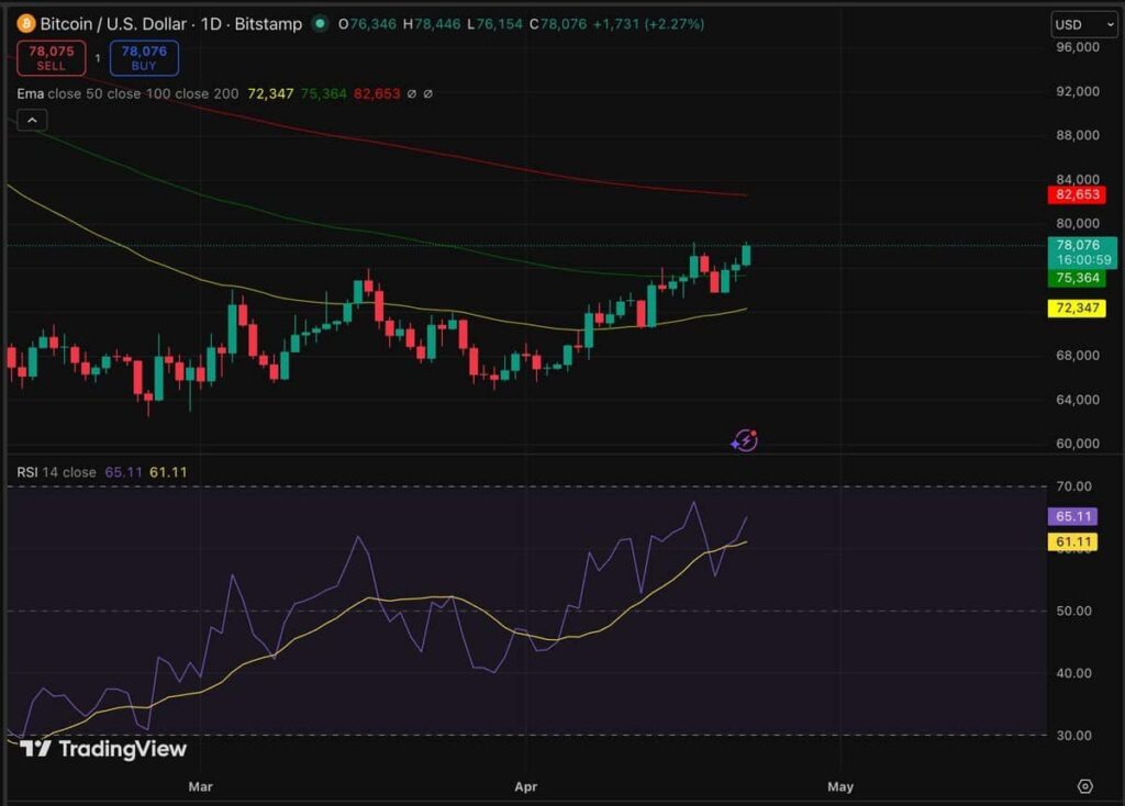 Wednesday’s jump brought BTC back into a crucial range. Most analyzes expect Bitcoin to reach $75,000 in the next 10 days, with a weekly forecast of $77,300, putting the current price in bullish territory. Some of the most optimistic predictions cap the April 22 price at $85,800, although this is far from the current technical consensus.