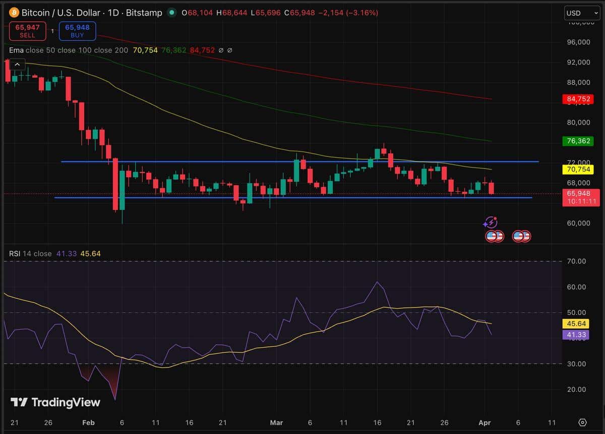 The post Bitcoin under pressure: will the price of BTC stay at $66,000? appeared first on Cryptonews Arabic.