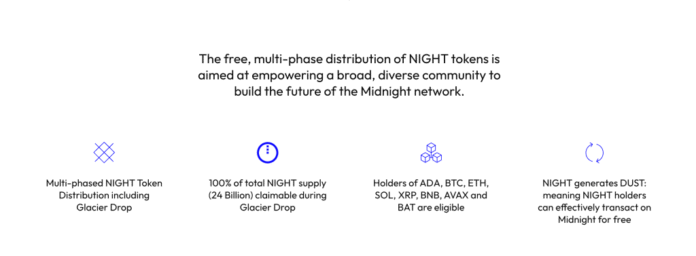 Free midnight currency bands will be distributed to investors who have access to Avalache-Avax, Cardano, Binance Coin-BNB, Ripple-XRP or Bitcoin Coin (Bitco-Btc), Solana-Sol, Ethereum-Eth, or to tokend-bat over 100 years old and will be allocated to the percentage of vear currency.