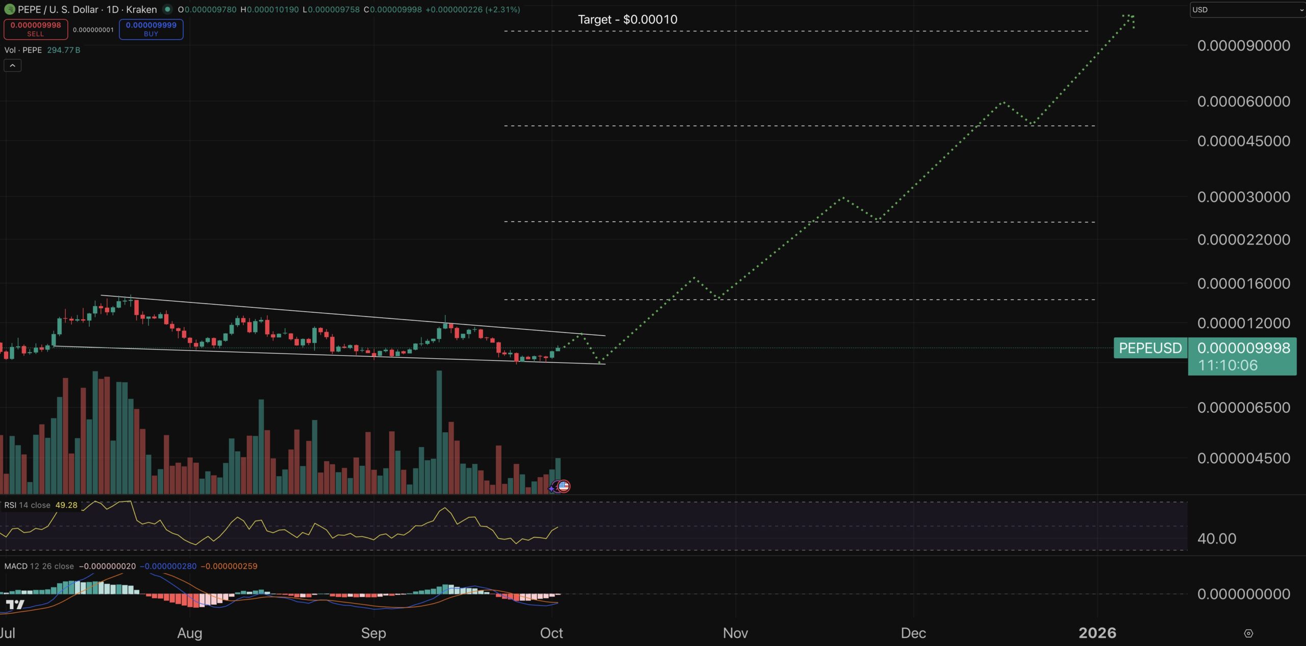 If the starting of the expected market is accompanied by the launch wave of the ETF Crypto expected, its price can be $ 0.0000,150 in the coming weeks before the end of the year about 0.000050,05050.