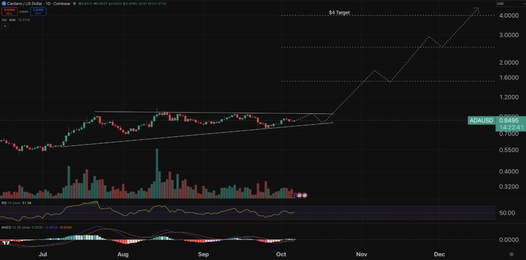 Cardano’s price is currently $ 0.8511, and despite its stability, it decreased by 3% in the last 24 hours, but it has been kept by 6.4% gains in the last 7 days, and it also maintained modest monthly gains about 3%, in an indication of a large existence to start before the end of the year.