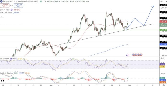 For merchants, risk establishments for the bonus are always high; The penetration of the barrier of $ 4,665 can lead to a targeting of $ 5,100 to a foreseeable term, medium -term expectations indicating much higher assessments if the hypothesis of Lopin and his vision of “a weighting of the price of Ethereum doubles about 100 times its current level or increases a lot”.