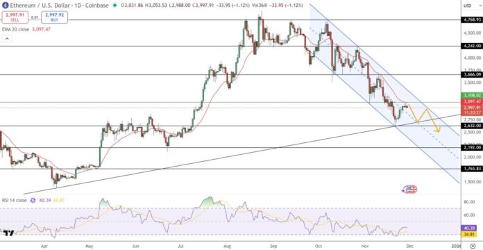 If Ethereum price manages to break through its descending channel and regain these barriers, it could quickly gain additional momentum that could shift talk from recovery to continuing towards $5,000, especially if markets regain risk appetite and activity on the blockchain increases sharply in early 2026.