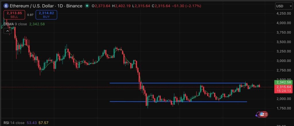 ETH price has remained confined within a range between $2,100 and $2,400 since February, with the $2,100 level acting as strong support, while the $2,400 level represents a ceiling that consistently rejects breakout attempts. A recent 8% rise stopped just below that ceiling.