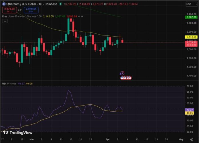 The current price action of Ethereum is in a stressful situation; It is trading just above the $2,000 support zone, which is well below the $2,400 resistance zone that halted several recovery attempts in the first quarter of 2026. Trading volumes have also been low, which is characteristic of a market awaiting macroeconomic recovery.