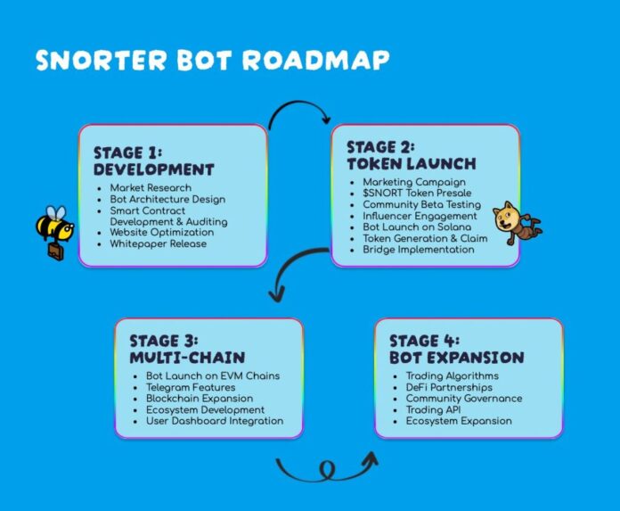 The Snorter project currently enters the most active step in the map of its path, with its approach to the completion of the second step which includes community experimental tests, an interaction with influencers, the launch of the robot on Blackchane Solana and the completion of the launching event of the currency and the creation of its tool to link liquidity between different blockchain networks.