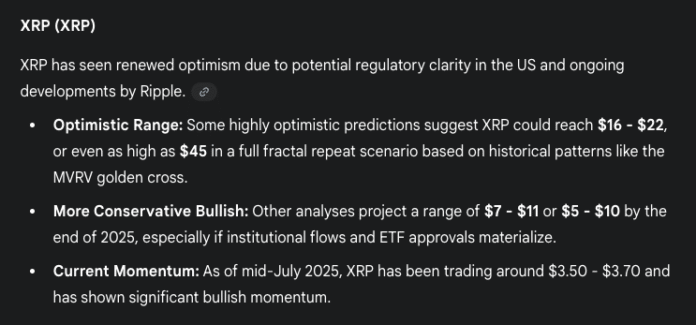 Gemini De Google is expecting Ripple-XRP prices, Solana-Sol, Solana-Sol by the end of 2025 by 2025 by 2025 by 2025 by 2025 by 2025