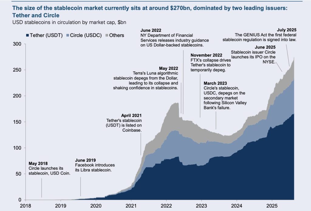 A report by the Goldman Sachs published this week expects the flow of billions of dollars to the stable currency sector is soon, this expectation comes after the completion of the sizes of transactions with a great value of 7 billions of dollars during the last quarter, which means that a fundamental change in the global financial system has shown the Horizon pay, and this vision is in convention) The announcement of the word of the US Scottary (Scott). Street institutions that are stable currencies will play a central role in the request for state bonds, in order to meet the market with the high value of the stable currency sector in August at $ 271 billion.