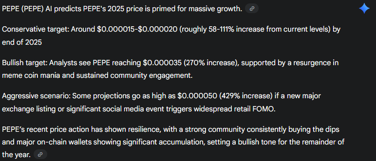 Regarding the price of Ethereum -Eth, he recently recorded a new historic summit at $ 4,950, confirming that he is still the leader in alternative currencies, this launch has prompted the price of existing currencies on Ethereum blockchain – like Pepe – and the rest of the alternative currency market to increase before that later. Although the market has calmed down relatively, the general atmosphere is still inclined to increase, supported by the most appropriate regulatory environment to date, which is in accordance with the forecasts of the Gemini model.