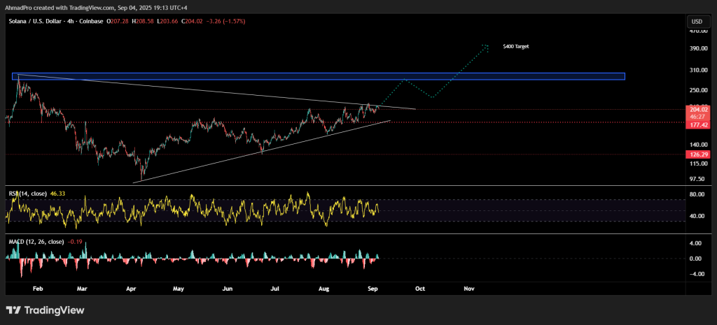 The relative resistance index is at the limits of 46 to leave a wide range of climb, in what seems to be a dish, but ready for the intersection if speculators continue to increase their pressures. In general, the artistic structure shows a clear force: if the price of the Solana room maintains its location at the top of $ 200 and enters the show area, then the artistic image preaching a long -term long -term path of around $ 400.