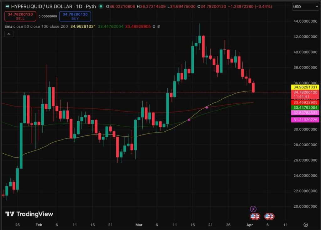 Hyperliquid Price Falls Below $35 With 376 Million Tokens Unlocked appeared first on Cryptonews Arabic.