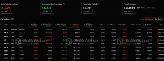 Ethereum’s immediate negotiation funds on the Stock Exchange were witnesses on August 15, a net investment of $ 59.3 million, putting an unprecedented purchase chain that lasted eight days with a total value of $ 338 million in the midst of a wave of recycling investments on the market.
