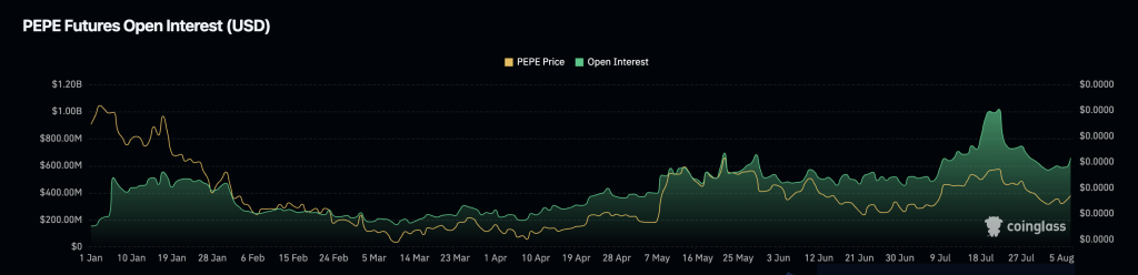 The data from the Quince platform show the increase in open interest (total of future term contracts) associated with bBe currency derivatives of its lowest levels recently recorded at $ 569 million at $ 658 million in publication at the time of publication. Although it remains below the highest levels recorded at nearly $ 35 billion, but it suggests the expectations of the PEPE price (PEPE).