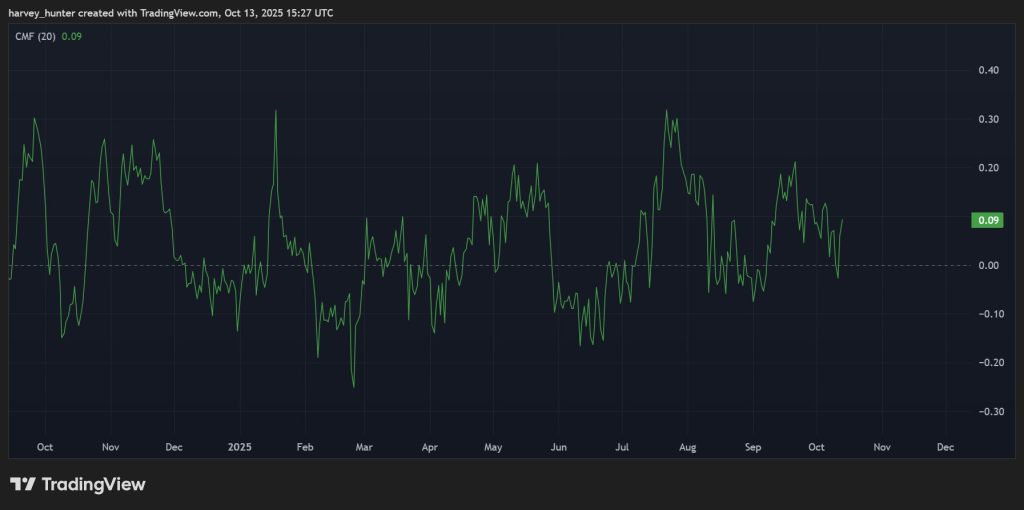 Chaikin Money Flow (CMF) indicator movements for Solana coin, source: TradingView