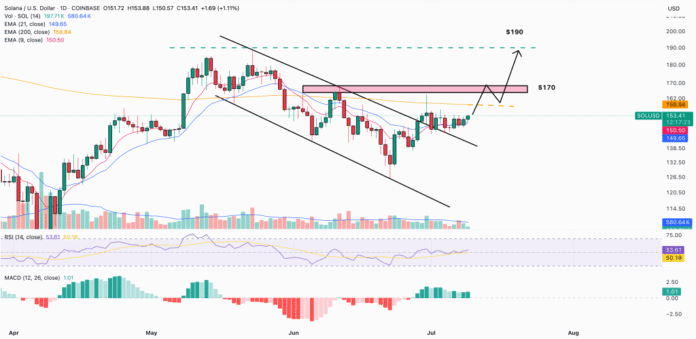 The daily scheme reveals the penetration of the price of the Solana currency for a downhill channel, but it quickly did not test the ASI Middle (EMA) for 200 days.