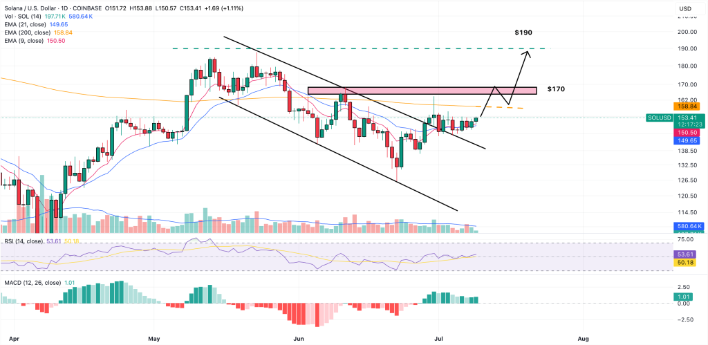 Solana currency rate: Targeting the level of $ 190 after the penetration of a downhill channel