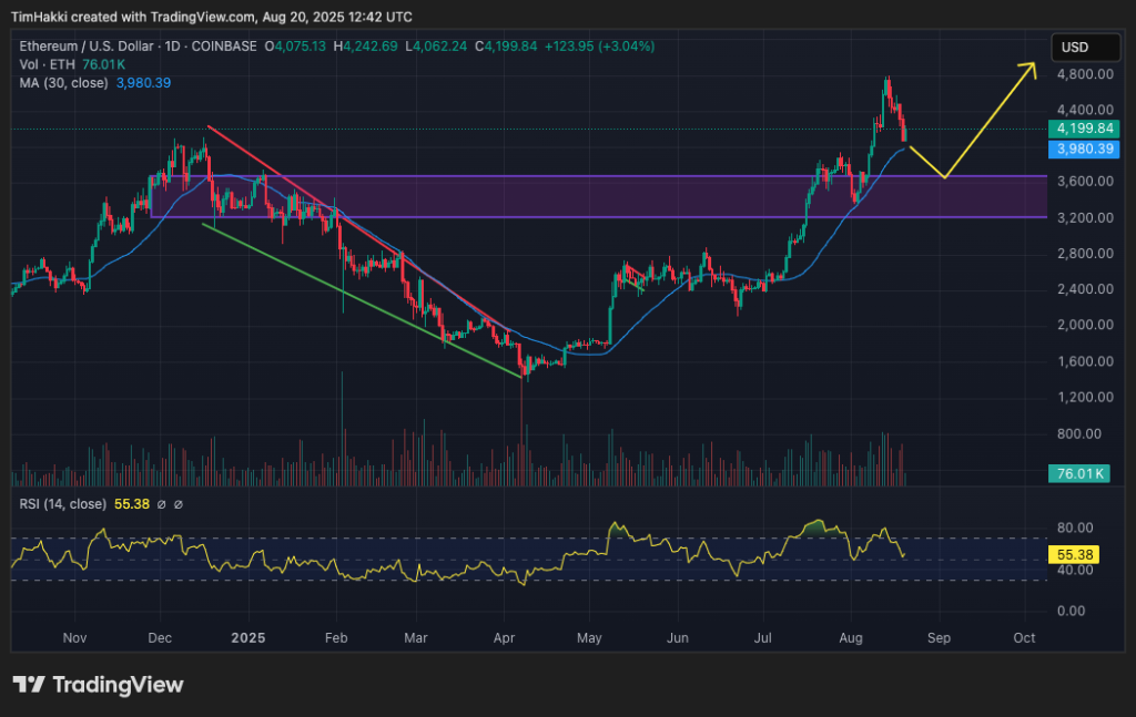 And if the downward trend that includes the wider market is not able to maintain a level of $ 4,000, $ 3,500 to $ 3,700 will support the price. In any case, the price can reach at least $ 5,000 by October.