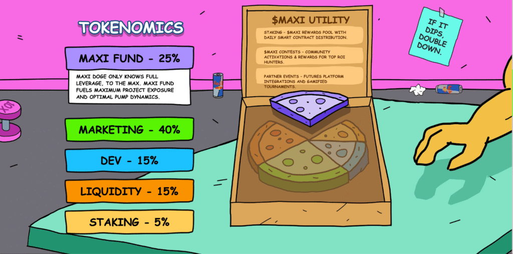 Maxi Doge can share with Dogecoin in certain characteristics, the most important of which is that it allows no functional use in order to ensure loyalty to the essential approach, but there is a flagrant difference between them; The first developers allocated 25% of the total supply to support the Maxi Fund and the activities of the partners, and its separate economic data is based on its distribution on the way to reduce pizza.
