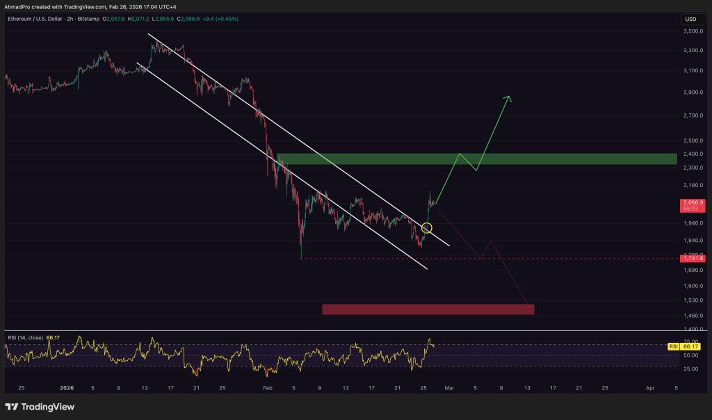 The 15% jump to $2,050 reshaped the chart. ETH reclaimed the $2,000 level, turning it into a support level again. This is the fundamental transformation. The next resistance is near $2,150, and once clearly breached, the path will open towards $2,400 with fewer obstacles.